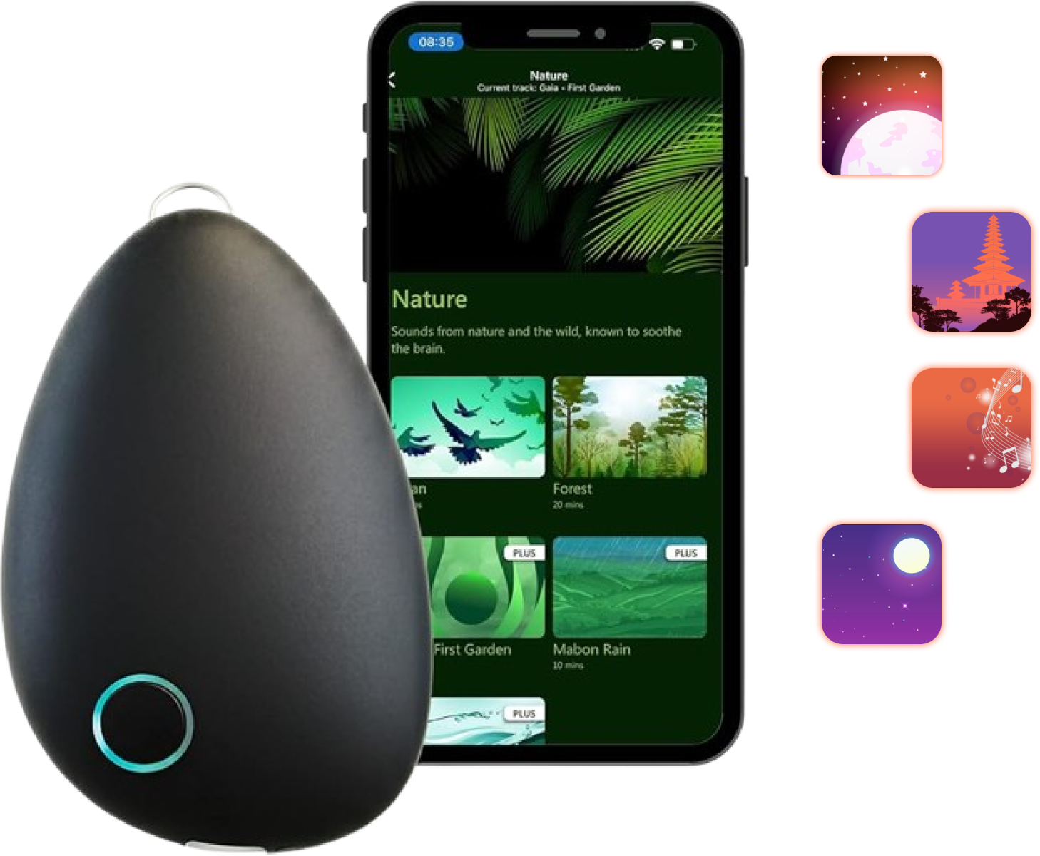 Sensate uses infrasonic waves and soundscapes to tone your vagus nerve, helping regulate your nervous system. Place it on your chest, connect to the app, and relax for 10-30 minutes.